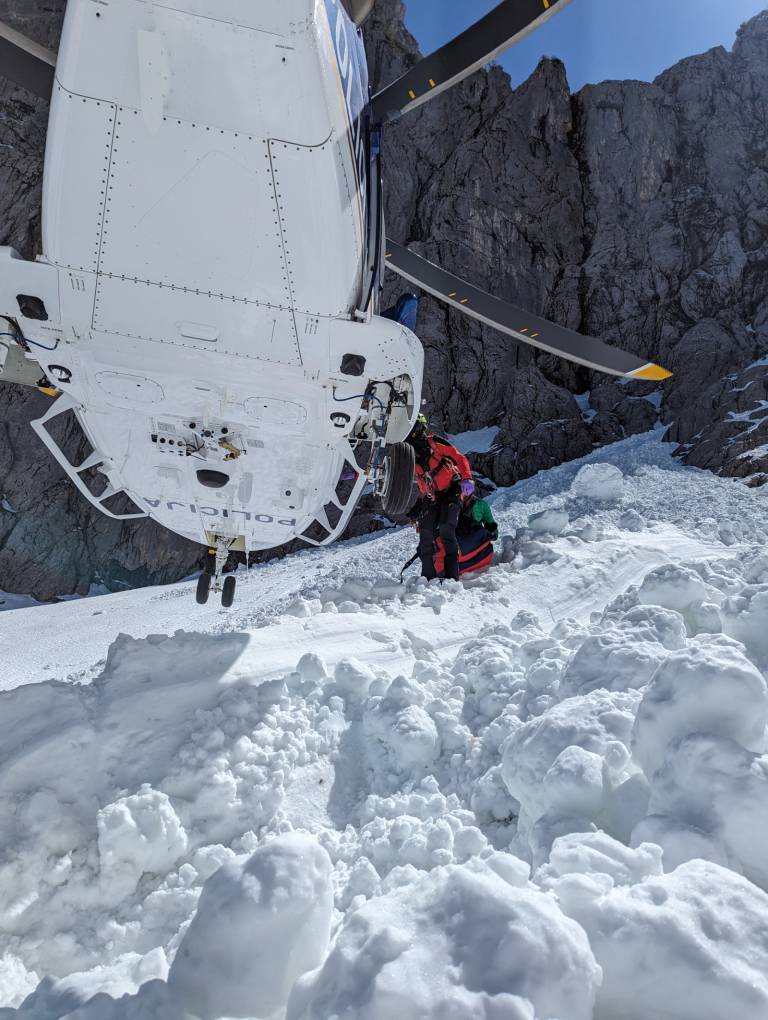 Posadka Letalske policijske enote je z namensko helikoptersko žolno v izjemno kratkem času natančno locirala mesto, kjer je bil zasut ponesrečeni. Na kraj so takoj odložili gorskega reševalca in zdravnika ter nato prepeljali še dodatne gorske reševalce, ki so ponesrečenega locirali in odkopali izpod snega. Sneg je bil zelo težak.