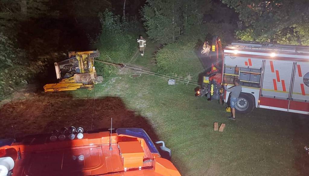 73-letnik je upravljal z delovnim strojem in ko je zapeljal na nabrežino, se je delovni stroj prevrnil na bok, voznik pa je padel iz kabine pod delovni stroj.