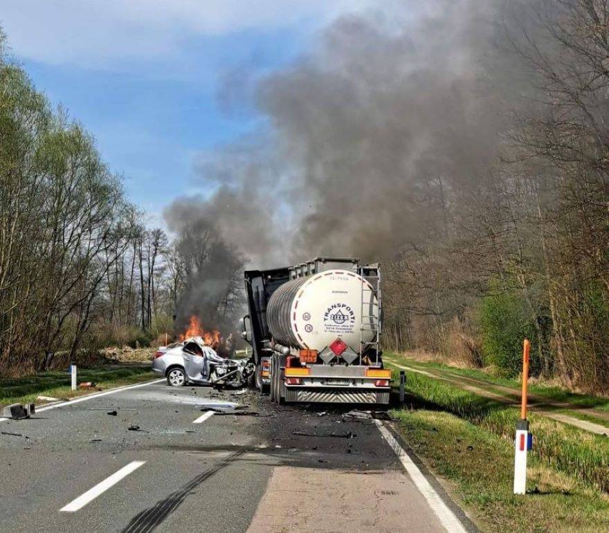 Na glavni cesti Črenšovci - Hotiza je danes, okoli 12.51, prišlo do hude prometne nesreče med osebnim avtomobilom in tovornim vozilom, vnel se je tudi požar.
