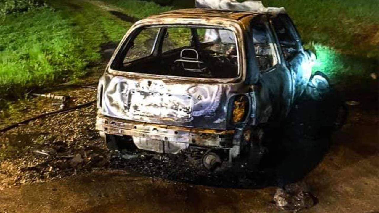 "Po trčenju je avtomobil zagorel, požar na avtomobilu so pogasili domači gasilci. Neznani voznik je po trčenju z avtomobila snel registrske tablice in odšel s kraja," so zapisali v PUMS.