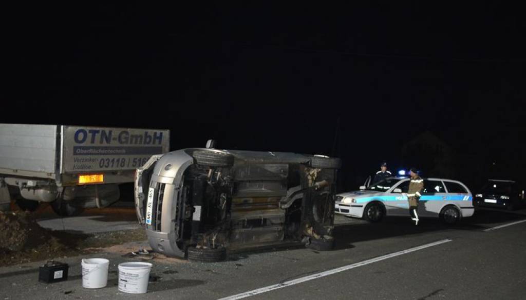 Sinoči je v naselju Podgorje v občini Apaće prišlo do prometne nesreče, v kateri je bila poškodovana ena oseba. Voznik osebnega avtomobila je med vožnjo trčil v zadnji del tovornega vozila, pri tem pa se je njegovo vozilo prevrnilo na bok. Gasilci PGD Gornja Radgona so rešili poškodovanca iz vozila, odklopili akumulator, pomagali pri prenosu poškodovanca in sanirali kraj nesreče.