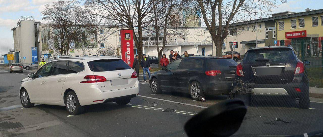 Okoli pol tretje ure popoldne je na Industrijski ulici v Murski Soboti prišlo do trčenja. Po naših informacijah so v prometni nezgodi bila udeležena tri osebna vozila.