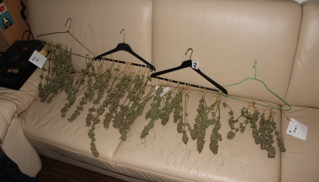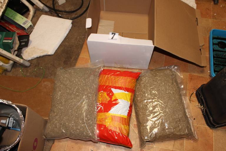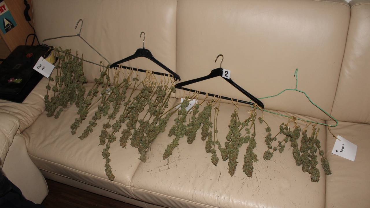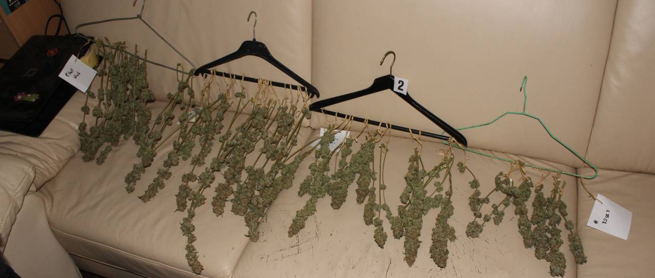 Med preiskavo kaznivega dejanja so policisti pri osumljencu opravili hišno preiskavo in v stanovanjski hiši, kjer z žrtvijo stanujeta, našli posebej prirejen prostor, v katerem je osumljenec proizvajal oziroma gojil in predeloval prepovedano drogo konopljo. V teh prostorih so policisti našli in zasegli okoli 8 kilogramov že posušene prepovedane droge konoplje in še 27 sadik rastline konoplje, za katero je analiza pokazala, da gre za prepovedano drugo konopljo. Nekaj sadik je osumljenec gojil tudi na prostem.