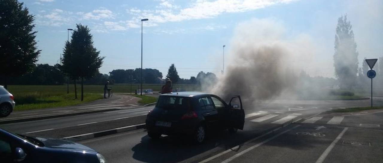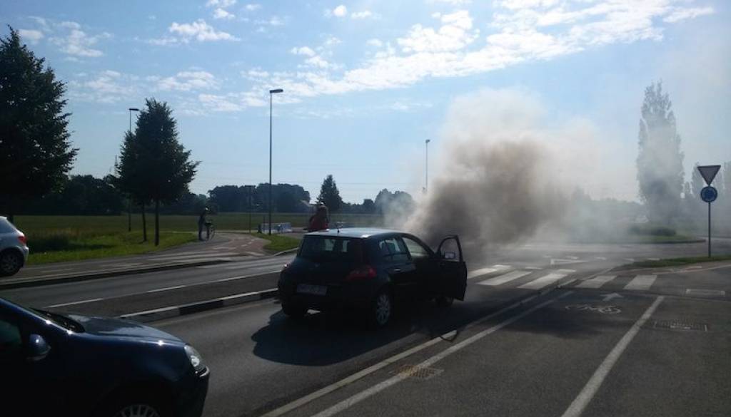 V krožišču zagorel avtomobil