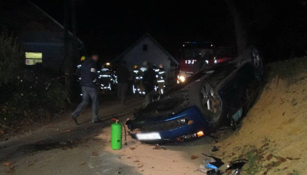 Ob 21.54 je v kraju Stanetinci, občina Cerkvenjak, voznik z osebnim avtom zapeljal s ceste in se prevrnil na streho. V nesreči se je poškodovala ena oseba.