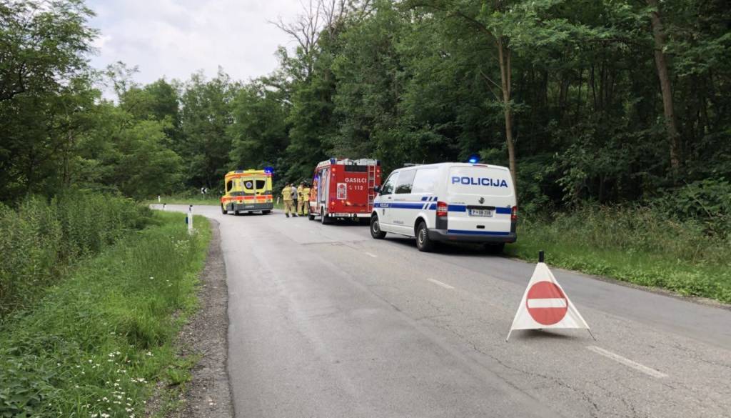 Osebno vozilo je zapeljalo s ceste in se prevrnilo na streho.
