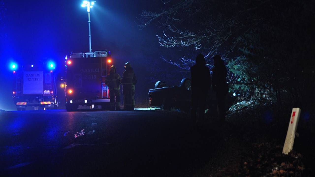 Voznik je v ostrem ovinku izven naselja zapeljal s ceste. Je bila kriva poledica?