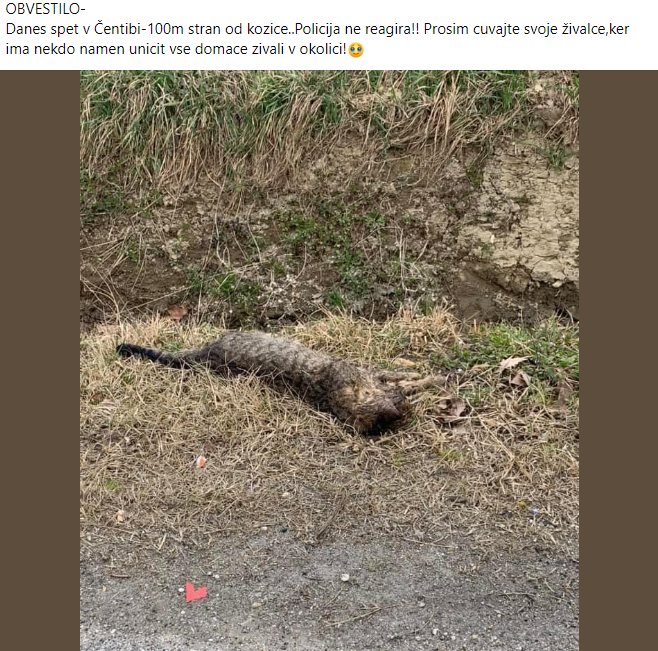 Na družbenem omrežju Facebook se je pojavil zapis, da je bilo v Pomurju v zadnjem času najdenih več poginulih živali. Šlo naj bi za namerno zastrupljanje.