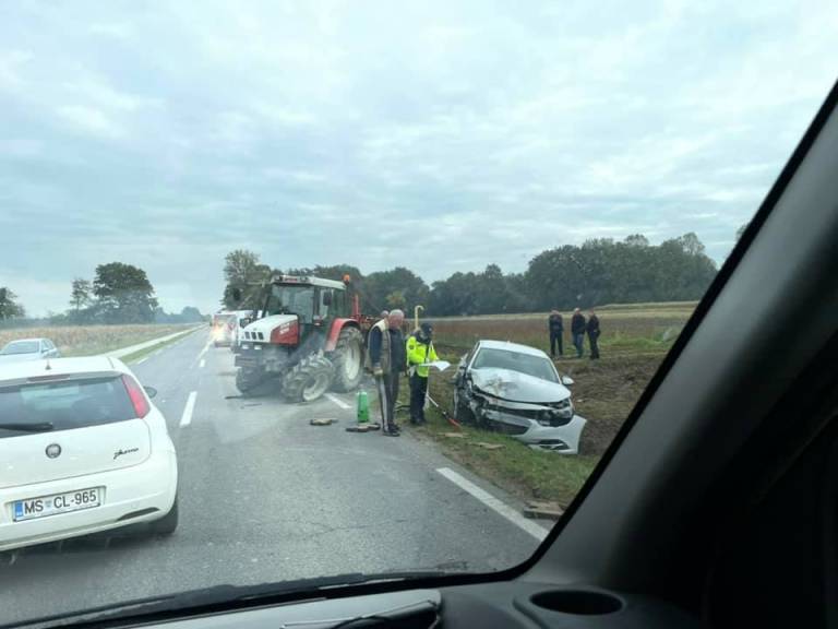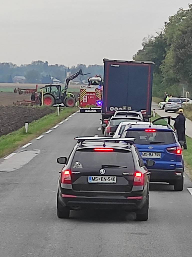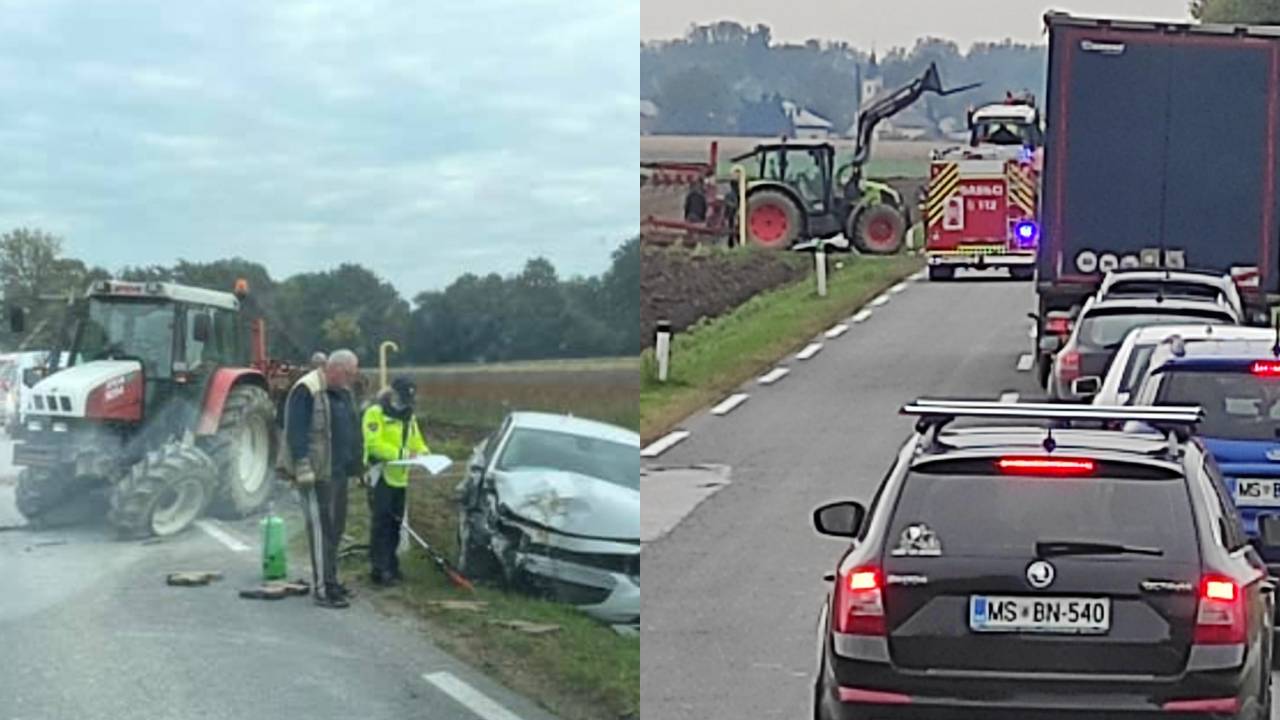 Po poročanju Uprave za zaščito in reševanje Republike Slovenije sta ob 9.17 na relaciji Lipovci–Dokležovje, občina Beltinci, trčila osebno vozilo in traktor.