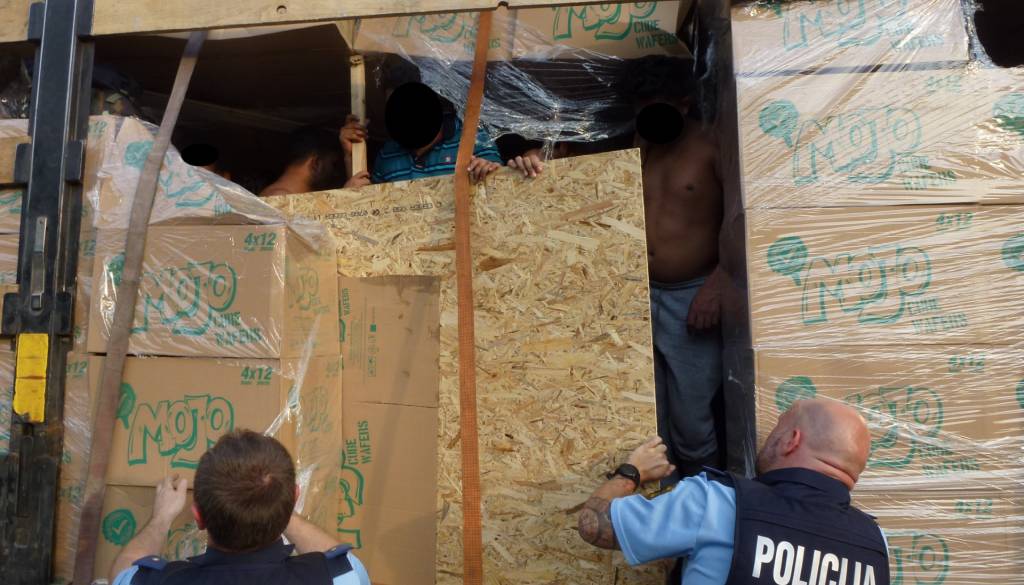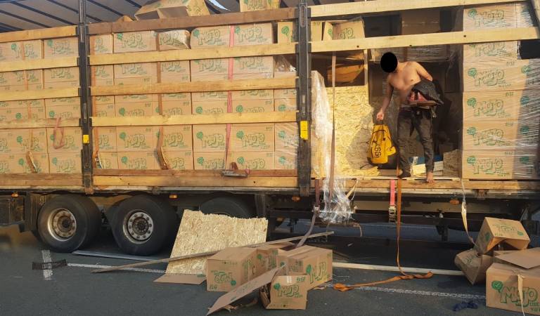 In sicer tujci so bili opaženi med tem, ko so plezali iz parkiranega priklopnika s cerado, romunskih registrskih oznak.