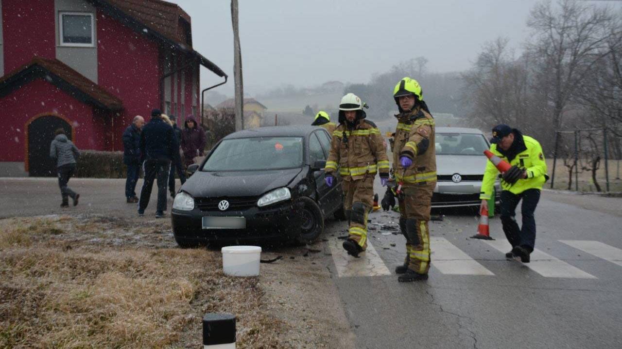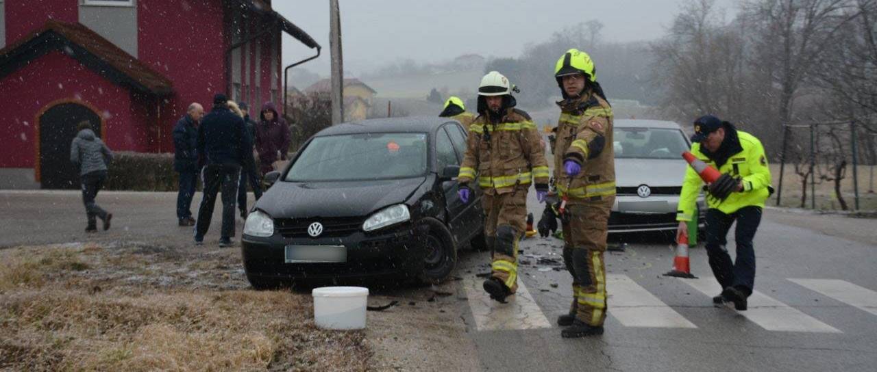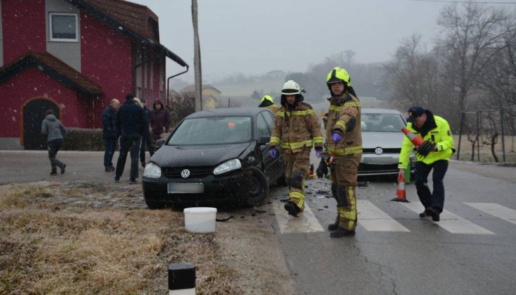Ob 15.22 sta v naselju Orehovci trčili osebni vozili, pri čemer sta bili poškodovani dve osebi.