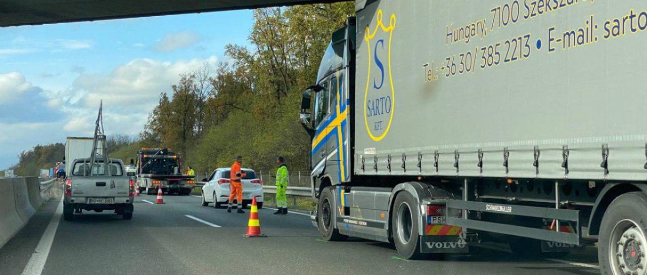 Voznica osebnega avtomobila se je peljala po prehitevalnem pasu in med vožnjo, zaradi delovne zapore, naglo zavila na vozni pas pred tovorno vozilo. V tistem času je po voznem pasu vozil voznik skupine vozil, ki je kljub zaviranju s sprednjim delom tovornega vozila trčil v zadnji del osebnega avtomobila.