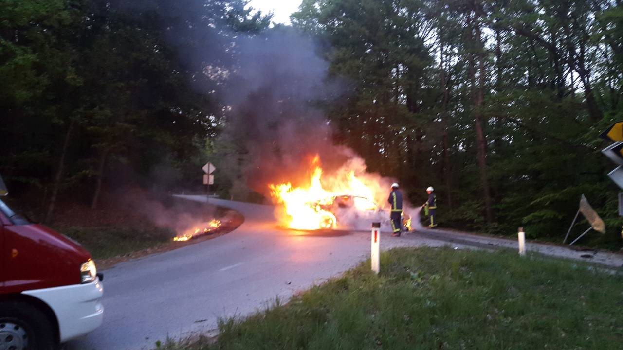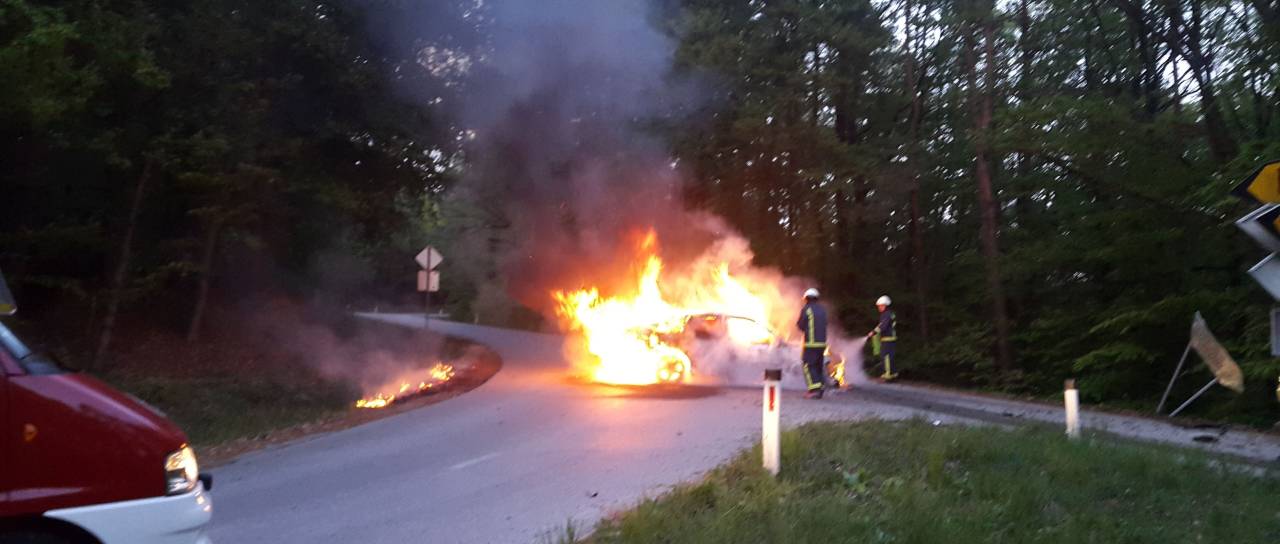 Malo po polnoči sta na relaciji Šentilj - Sladki vrh, v križišču za Ceršak, trčili dve vozili. Po trčenju se je eno vozilo prevrnilo na streho in zagorelo. Na kraj so bili takoj napoteni policisti, gasilci in reševalci.