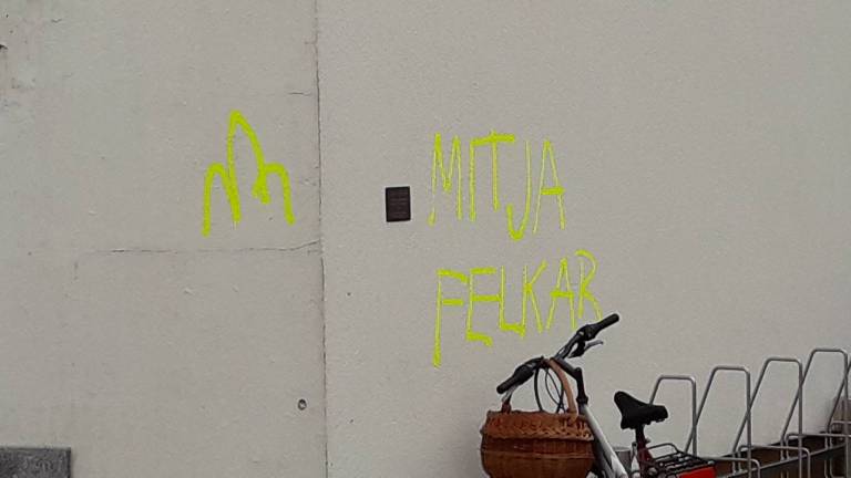 Žal tudi tokrat ne gre za kvaliteten grafit ali grafit s sporočilno vrednostjo, temveč za navadno skrpucalo. Nepridipravi so na belo steno ob Kocljevi ulici napisali »Mitja Felkar«, na pročelno stran stavbe pa dorisali še nespodoben motiv.