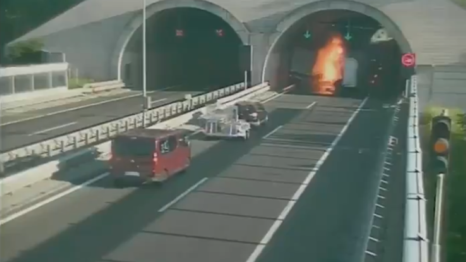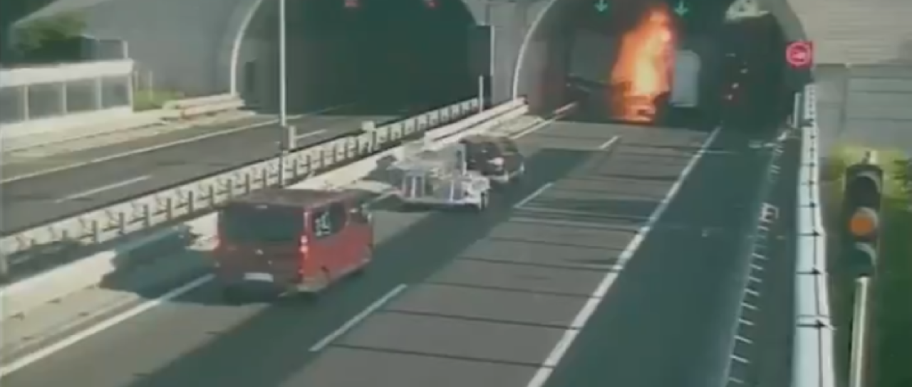 »Ob 6.56 je tovorno vozilo v pokritem vkopu Malečnik trčilo v kolono in se pri tem vnelo,« so zapisali ob objavi posnetka.
