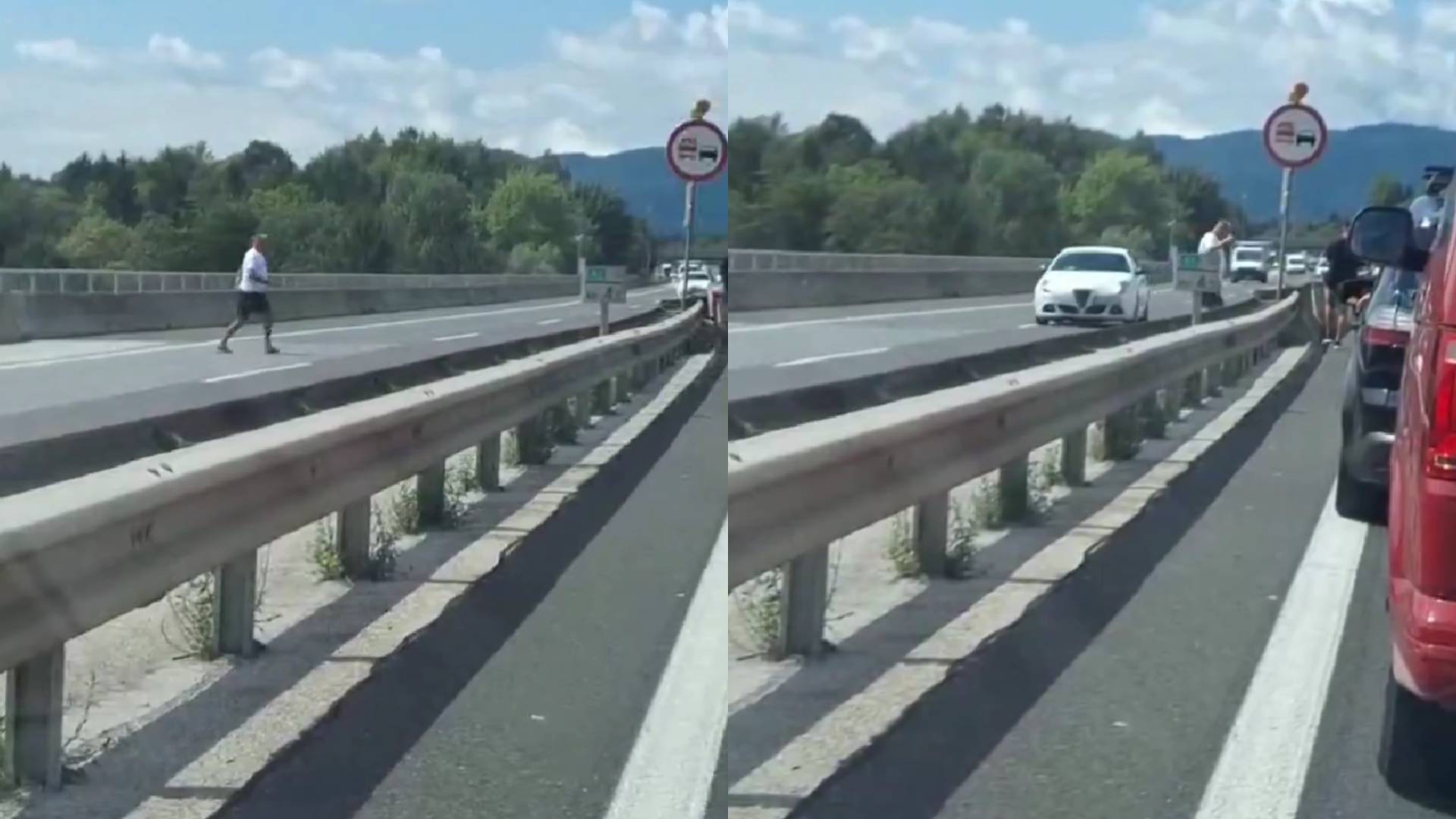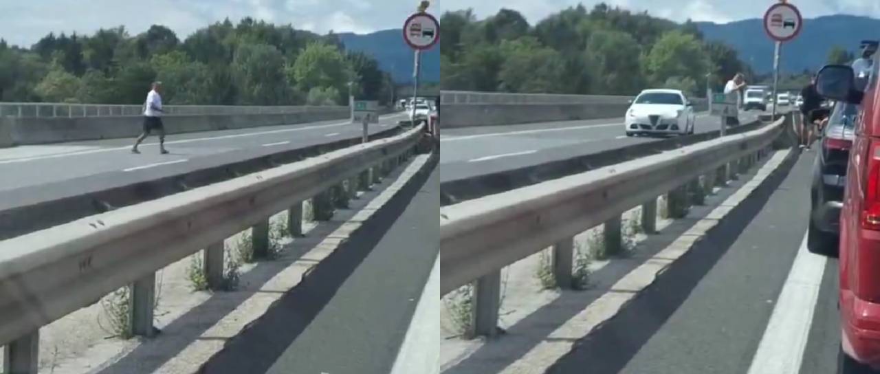 Na družbenih omrežjih kroži posnetek, ki prikazuje izjemno nevarno početje moškega na štajerski avtocesti. V natikačih je prečkal pas, kjer je promet potekal povsem normalno.