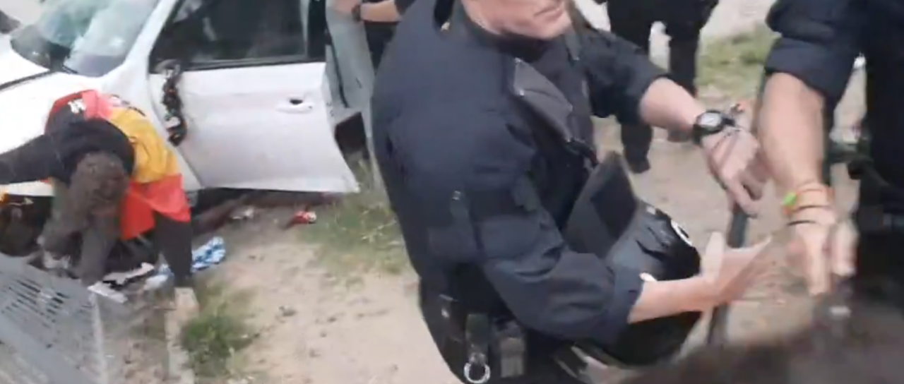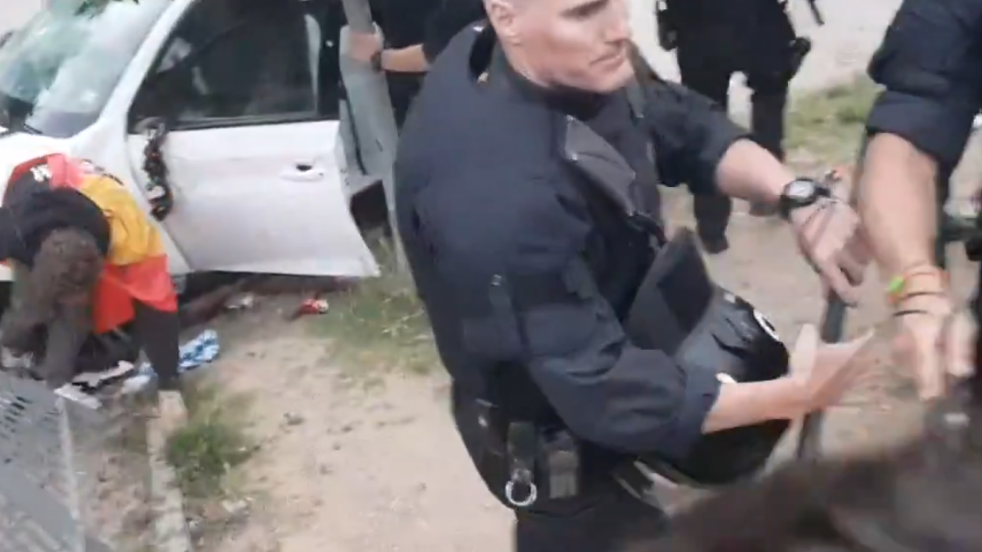 Voznica je avtomobil zapeljala v območje, kjer je bila vožnja za vozila prepovedana. Nato je malo pospešila, kar je čakajoče razjezilo in obstopili so avtomobil. Policisti pa so skušali pomiriti kaos.