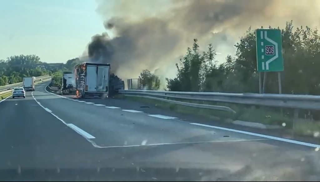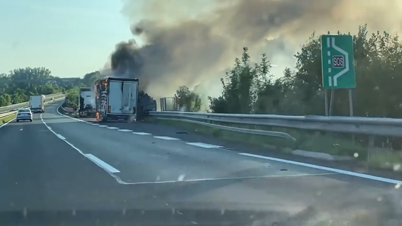 Na avtocesti je med priključkom Lenart in pokritim vkopom Močna proti Mariboru zagorelo vozilo.