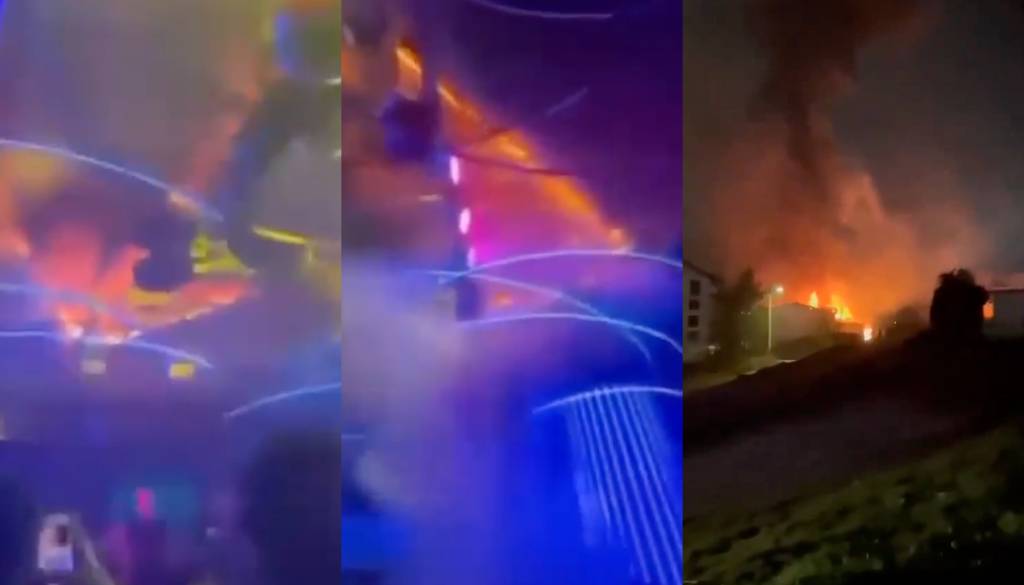 Koncert, ki se je začel okoli polnoči, je bil ob izbruhu ognja prekinjen.