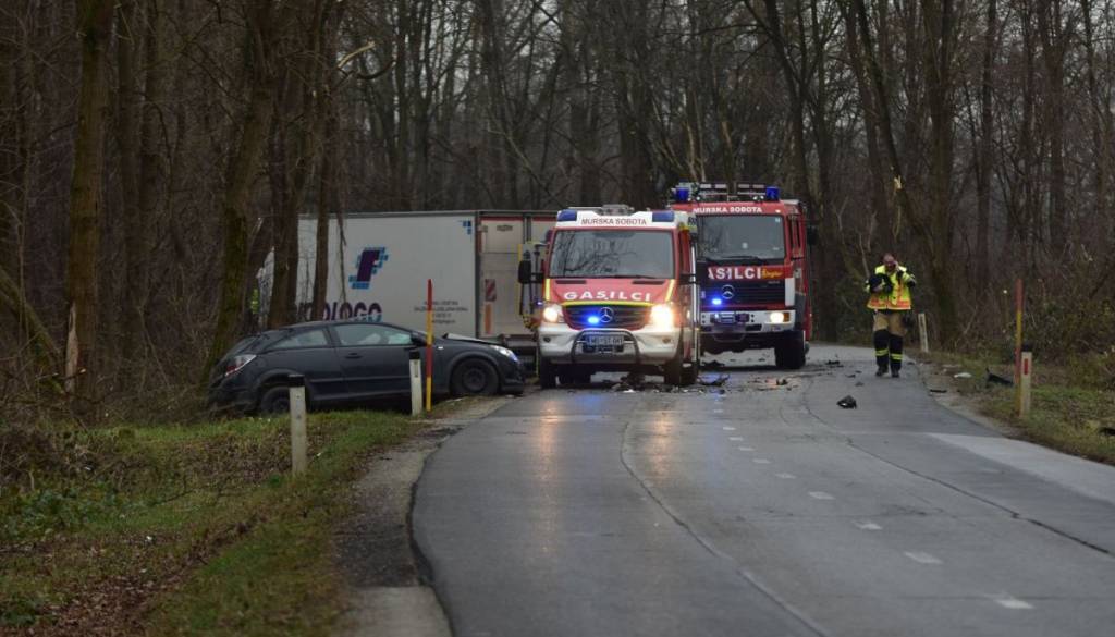 Na cesti Murska Sobota – Markišavci je voznica osebnega avtomobila zapeljala na levo smerno vozišče in trčila v tovorno vozilo. V nesreči se je voznica hudo telesno poškodovala, voznik tovornega vozila pa lažje. Škode na vozilih je za okoli 10.000 evrov.