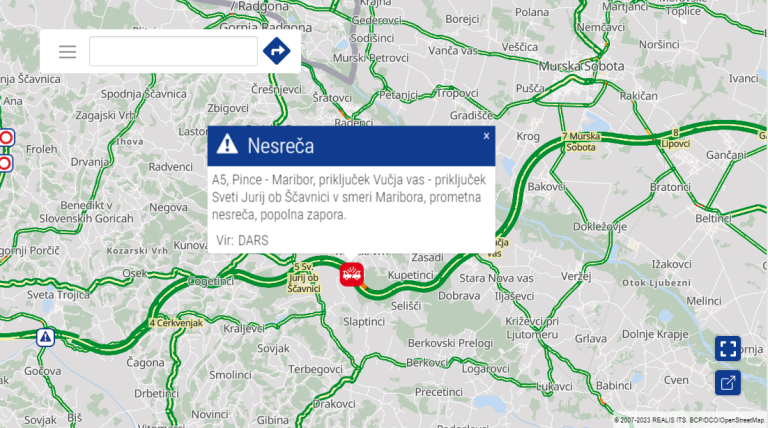Prometno informacijski center za državne ceste poroča, da je prišlo na pomurski avtocesti, natančneje med Vučjo vasjo in Sv. Jurijem ob Ščavnici v smeri proti Mariboru, do prometne nesreče.