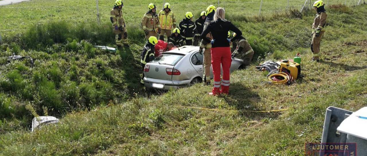 Z avtoceste zapeljala čez zaščitno ograjo in končala v jarku