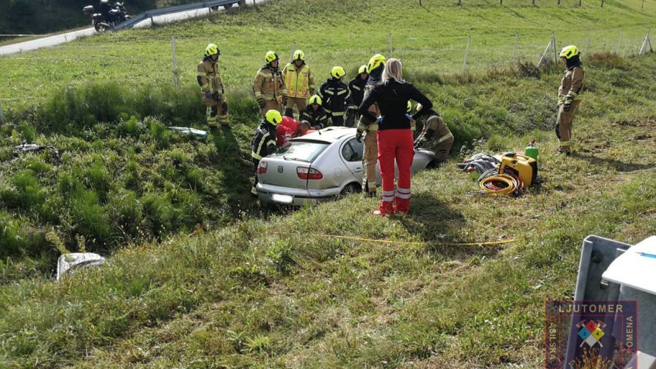 Voznica je zapeljala preko zaščitne ograje in končala v jarku.