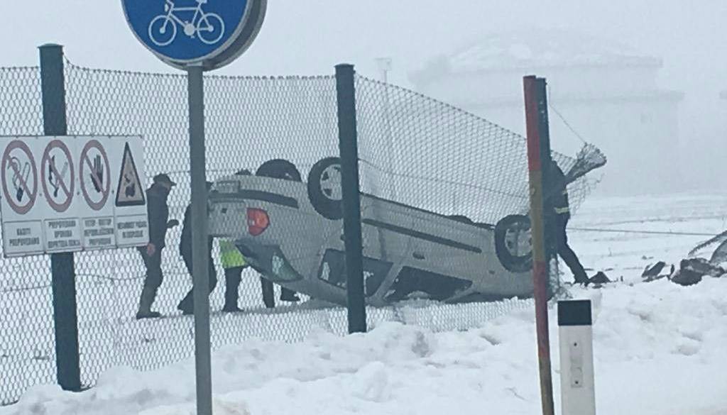Voznica osebnega avtomobila naj bi po prvih neuradnih informacijah tudi zaradi poledice zapeljala s cestišča.
