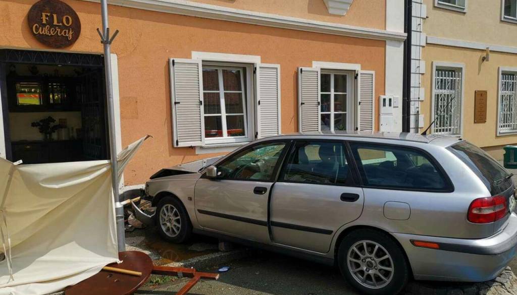 V Ljutomeru, na Miklošičevem trgu, je danes prišlo do prometne nesreče, v kateri je bilo udeleženo eno vozilo. Po neuradnih informacijah naj bi voznica osebnega avtomobila, s katerim je pripeljala po Ptujski cesti, trčila v slaščičarno zaradi tehnične okvare na avtomobilu.