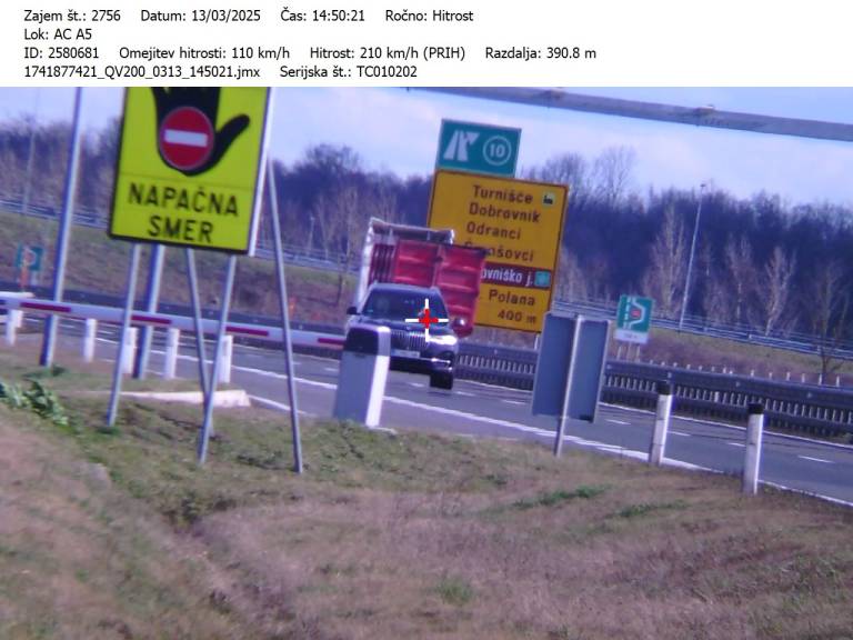 Policisti Postaje prometne policije Murska Sobota so v četrtek, 13. marca, opravljali meritve hitrosti na pomurski avtocesti v smeri Lendave.