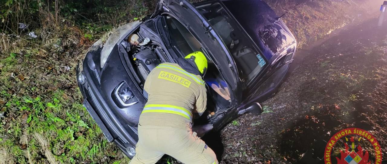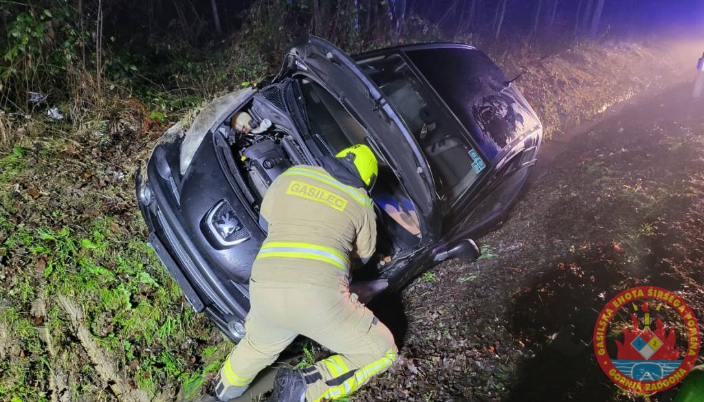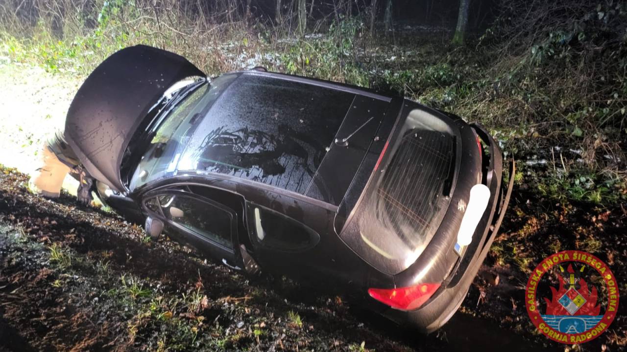 Na cesti Grabonoš–Spodnji Ivanjci, v občini Sveti Jurij ob Ščavnici, je osebno vozilo zapeljalo s cestišča. Gasilci PGD Gornja Radgona so zavarovali kraj dogodka, počistili cestišče, odklopili akumulator in nudili pomoč reševalcem in policistom. Reševalci nujne medicinske pomoči Gornja Radgona so oskrbeli lažje poškodovano osebo.