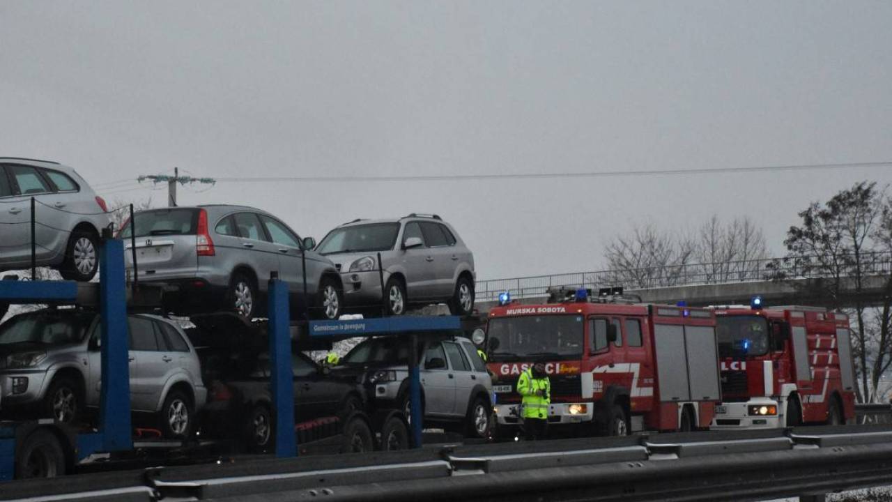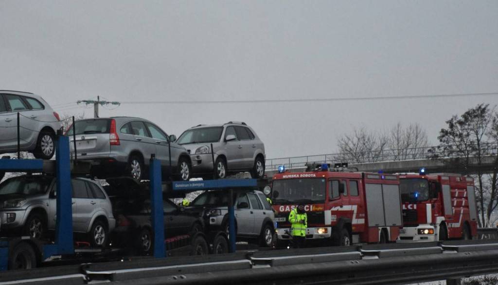 Ob 8.35 so se na pomurski avtocesti med Vučjo vasjo in Mursko Soboto proti Lendavi vnele zavore na prikolici za prevoz vozil. Delavca DARS sta začetni požar omejila, gasilci PGD Murska Sobota in Ljutomer pa so požar dokončno pogasili ter s termovizijsko kamero pregledali prikolico.