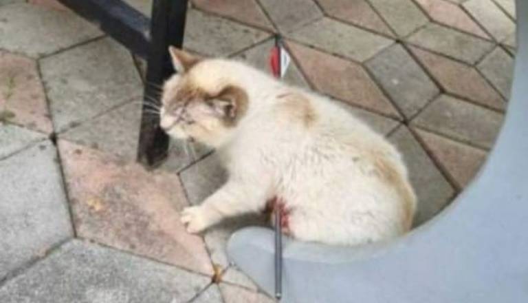 Kako kruto: Muca prestrelili s samostrelom, ni mu bilo pomoči