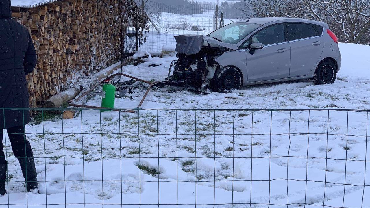Po naših informacijah naj bi voznik osebnega avtomobila naj vožnje ne bi prilagodil razmeram na cesti, ki so glede na fotografijo, slabše očiščene. Voznik je vozil iz smeri Fikšinci proti Gerlincem, nato pa zdrsnil s cestišča in trčil v bližnjo hišo.