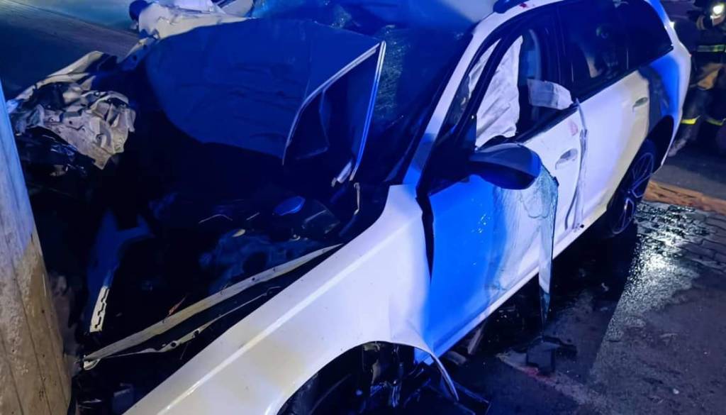 Izgubil oblast nad vozilom in čelno trčil v betonski steber