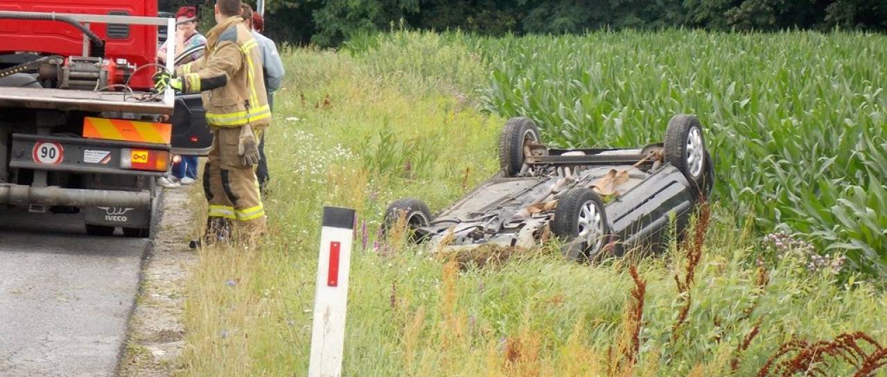Danes okrog 12.45 je na Kopališki ulici v Murski Soboti zaradi spolzke ceste osebno vozilo zdrsnilo s cestišča in se prevrnilo na streho, pri čemer se je lažje poškodovala voznica. Posredovali so gasilci iz PGD Murska Sobota, ki so odklopili akumulator, pomagali reševalcem, postavili vozilo na kolesa ter sanirali cestišče.