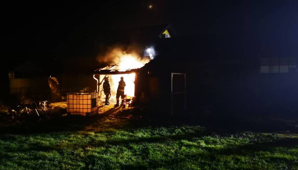 Nekaj pred osmo uro zjutraj je zaradi udara strele začelo tleti ostrešje gospodarskega objekta, posredovati so morali gasilci.