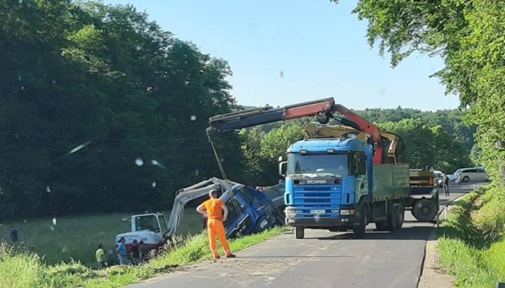 Zakaj točno je prišlo do zdrsa tovornega vozila, še ni znano, v nesreči pa po prvih informacijah ni bilo poškodovanih. Cesta je zaradi reševanja tovornega vozila zaprta.