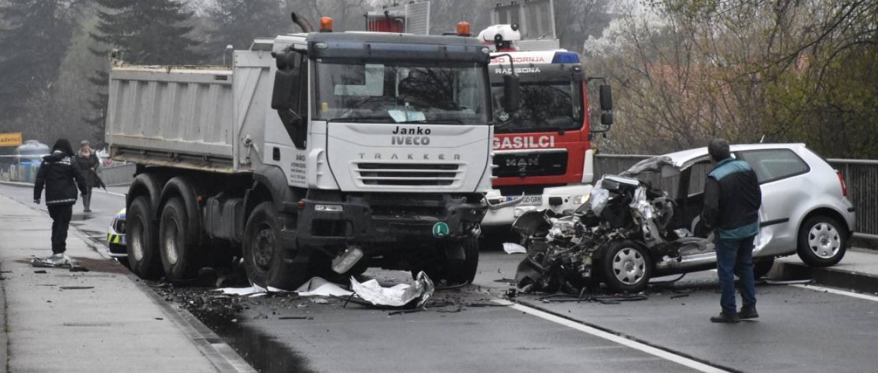 Nekaj metrov za mostom čez reko Muro sta trčila avtomobil in tovornjak. Po naših informacijah je v nesreči življenje izgubila 38-letna ženska.