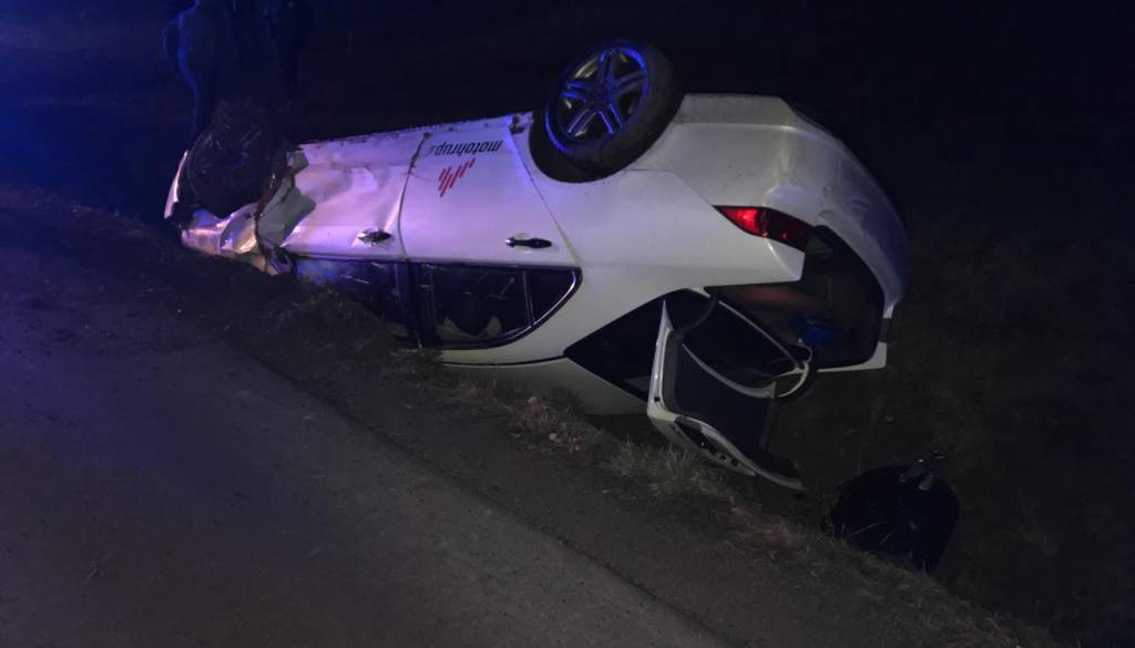 Včeraj v večernih urah je v naselju Gornji Slaveči, osebno vozilo zdrsnilo s cestišča in pristalo na strehi v jarku.