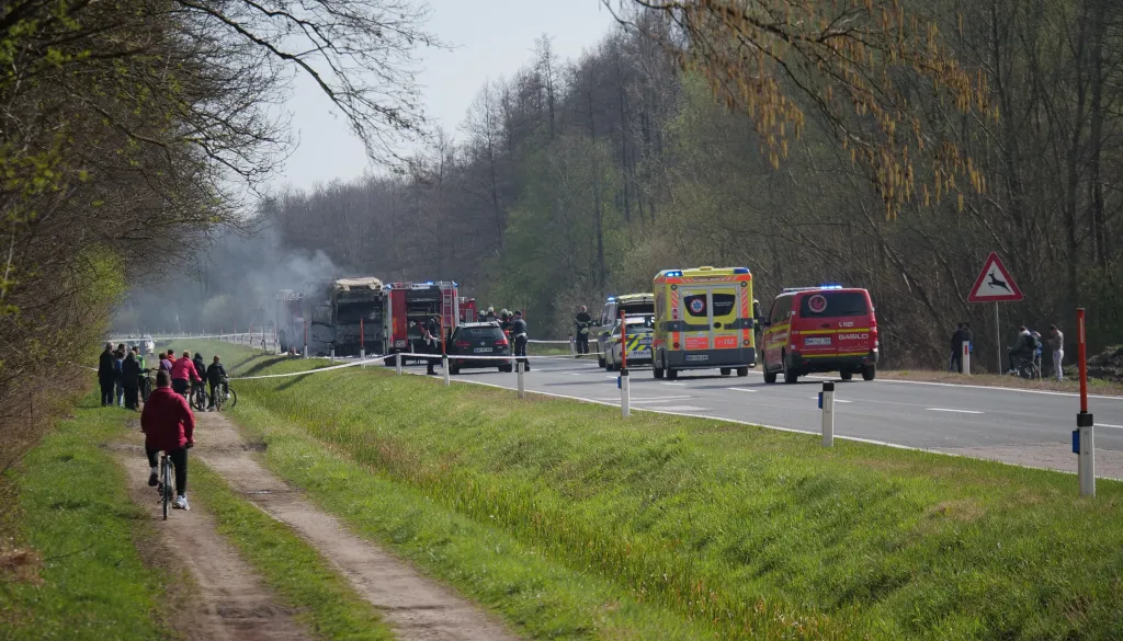Še dobro, ka se cisterna nej vužgala. Ne vem sicer, kakšno snov je vozo. Gasilci pa so prišli, kda se je ogenj že sam od sebe vgasno.