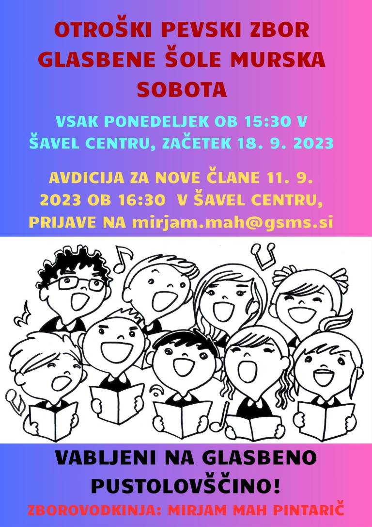 Za zbore se ne plačuje noben prispevek, so pa veseli, če kdo pride. »Glasbena šola Murska Sobota je super, tako da pridružite se nam,« zaključi Mah Pintaričeva.