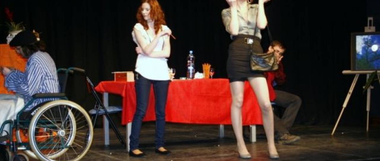 V grajski dvorani v Murski Soboti so dijaki srednje srednje zdravstvene šole izvedli gledališko predstavo “Tipična slovenska družina."