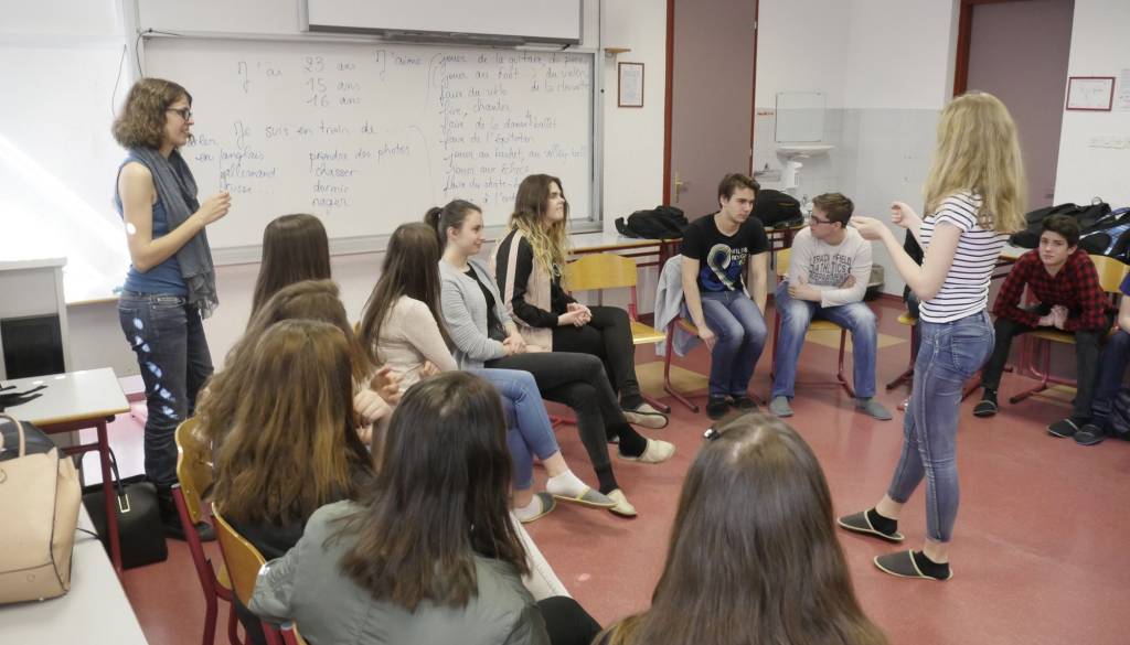 Na Gimnaziji Franca Miklošiča v Ljutomeru so v ponedeljek gostili Francozinjo Caroline Dewitt, ki je nagovorila dijake prvih letnikov v francoskem jeziku in jim svoj jezik predstavila na nekoliko drugačen način, namreč skozi pantomimo. Pri igri je bilo pomembno, da se je vse odvijalo izključno v francoskem jeziku. Dewittova je dijakom ves čas dajala napotke v francoščini in oni so jo morali razumeti brez pomoči domače učiteljice ali kogar koli drugega.