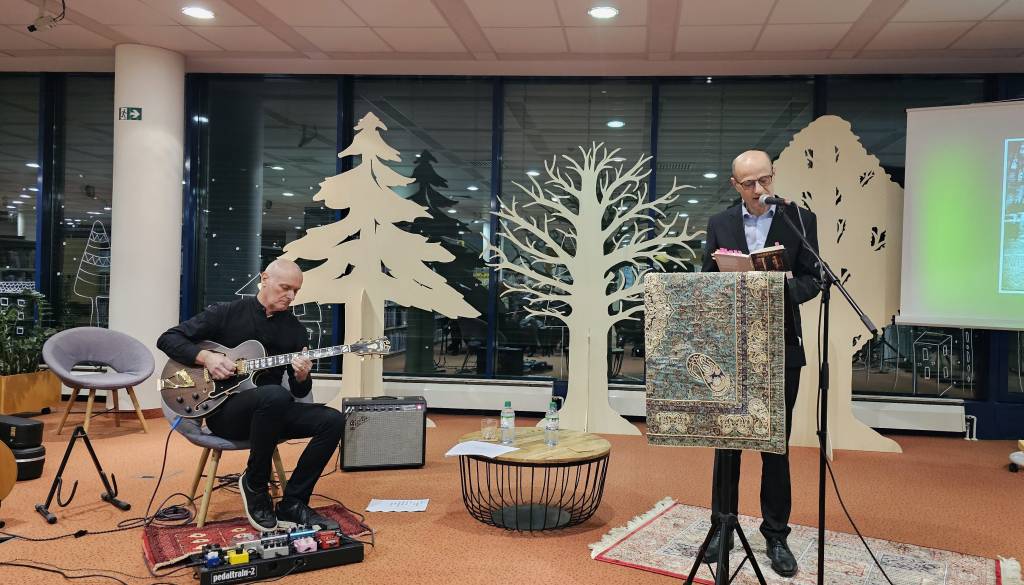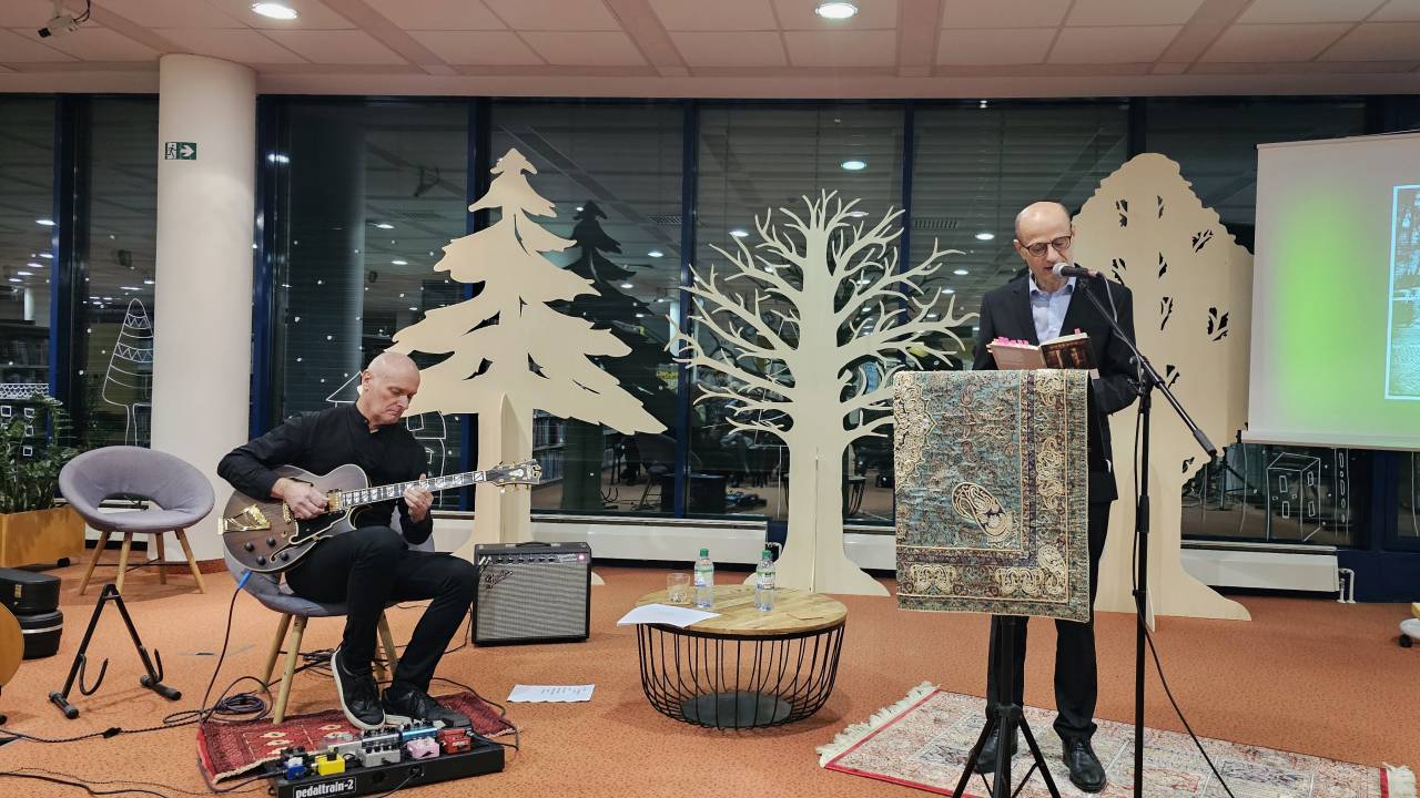 Ob kulturnem prazniku so včeraj, 6. februarja, v Pokrajinski in študijski knjižnici Murska Sobota pripravili literarno-glasbeni večer z Dušanom Šarotarjem in Iztokom Rodežem.