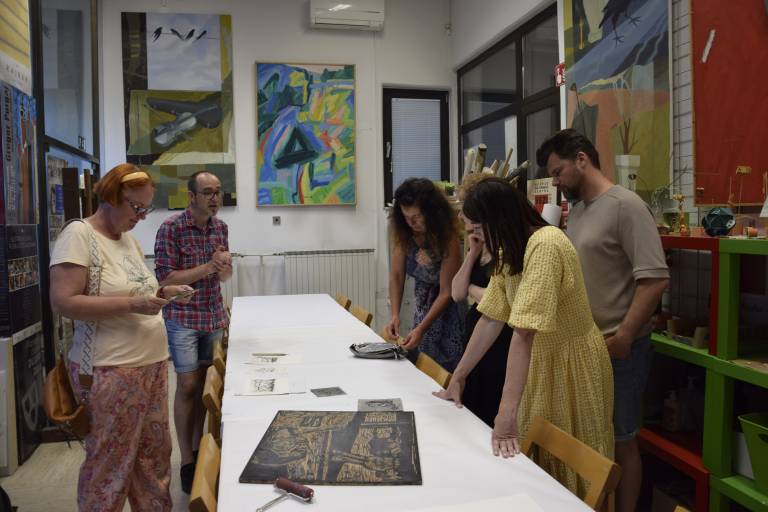 Dogajanje v Galeriji Murska Sobota se je začelo ob 18. uri z likovno delavnico za odrasle, kjer so udeleženci pod strokovnim vodstvom preizkusili likovno tehniko grafika in ustvarjali svoja umetniška dela.