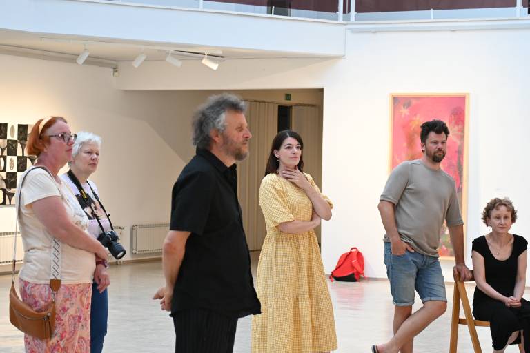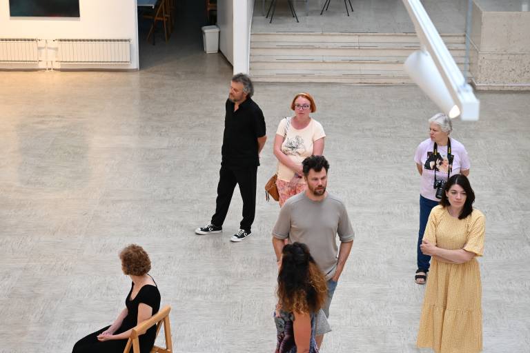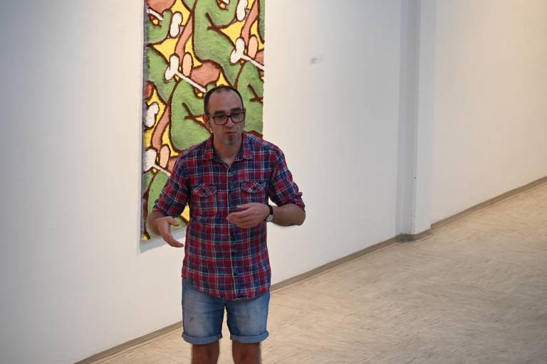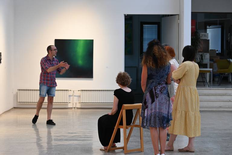 Ob 20. uri je sledil voden ogled razstave s kustosom Gregorjem Purgajem, ki je obiskovalce popeljal skozi aktualno razstavo, podrobneje predstavil razstavljena dela ter avtorje.