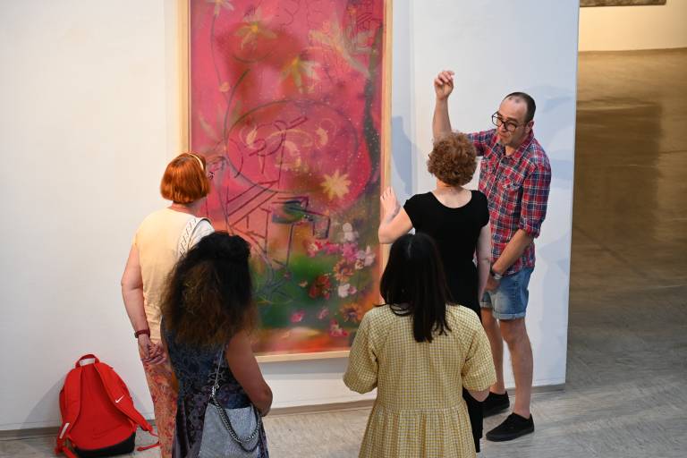 S svojim poglobljenim znanjem in zanimivimi zgodbami je kustos pritegnil pozornost vseh zbranih, ki so uživali v umetnosti iz prve roke.