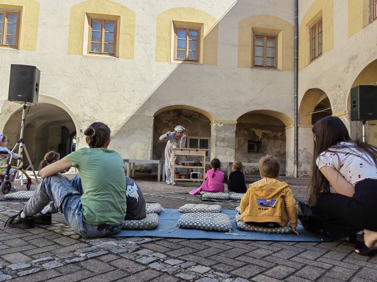 Ob 10. uri je na sporedu bila otroška predstava gledališča Pupilla, Mala kokoška peče kruh, ki je očarala najmlajše obiskovalce. Predstava je poskrbela za smeh in veselje med otroki ter njihovimi starši. Sledilo je branje otroške in mladinske literature.