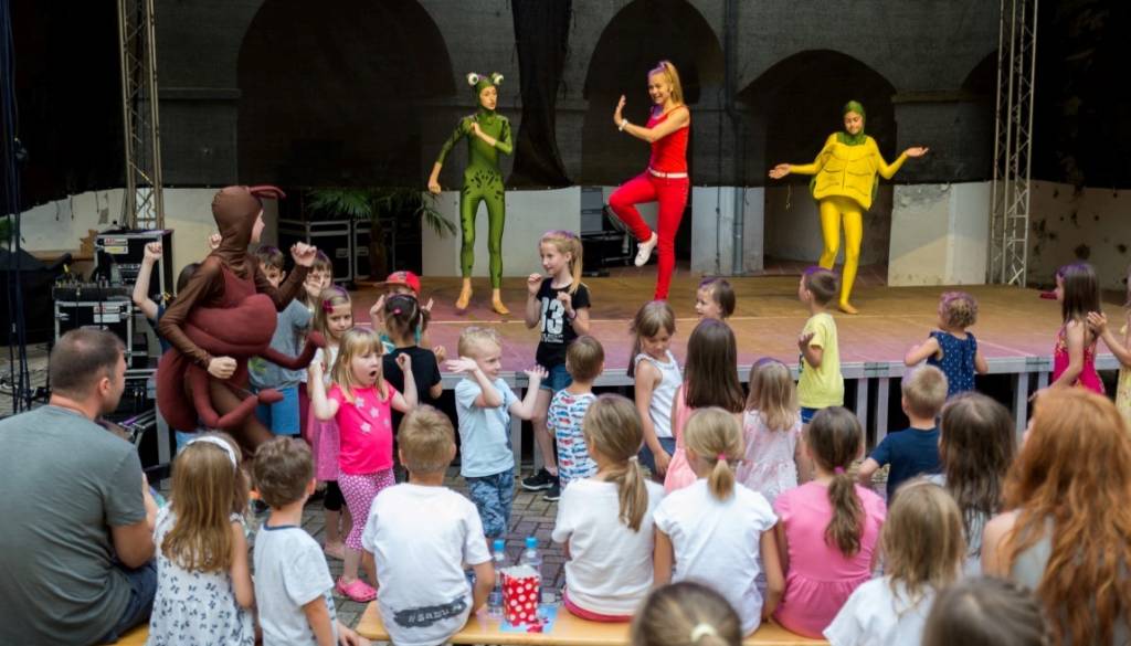 Otroci so se na grajskem dvorišču zabavali v družbi Mojce in njenih prijateljev.